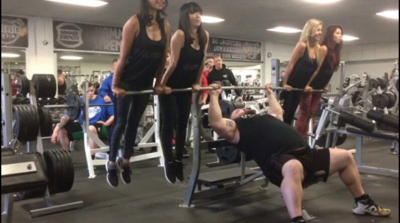 EDDIE HALL Bench Pressing 4 Girls at Strength Asylum